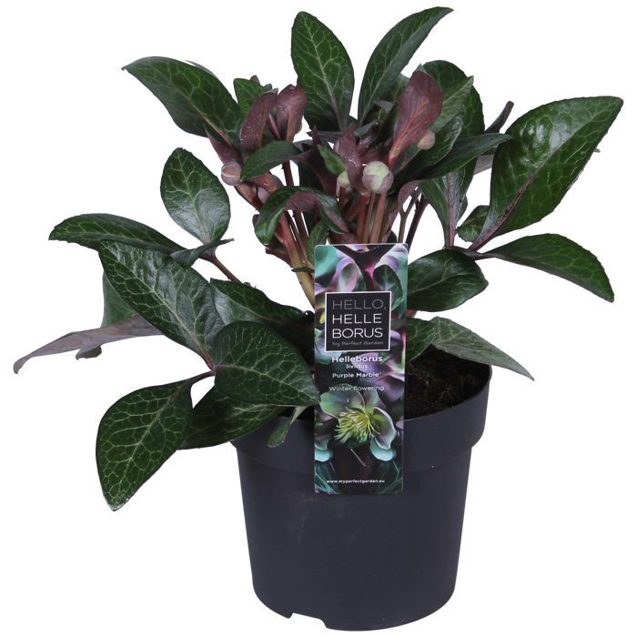 ‘Helleborus Lividus Purple Marble’ komt van origine van het Spaanse eiland Mallorca. Nu wordt de Helleborus daar echter nog maar zelden gevonden. De Helleborus Lividus is een mooie en compacte plant met prachtige getekende groen-witte bladeren en groen-rood/paarsachtige bloemen. Wanneer je de Helleborus in de tuin zet kun je het beste humusrijke potgrond mengen met de grond uit de tuin. De Helleborus Lividus begint in december te bloeien en de prachtige bloemen blijven mooi tot in maart. Doordat de Helleborus in de winter en het vroege voorjaar als een van de weinige planten bloeit is deze ook aantrekkelijk voor de eerste bijen die ontwaken uit de winterslaap. De plant staat bij voorkeur op een plek in de halfschaduw. De Helleborus Lividus kan de warmte wel wat beter verdragen dan andere Helleborus soorten, dit omdat zij van nature ook in wat warmere gebieden te vinden is. Deze soort hoef je niet te snoeien, wel adviseren wij oude bladeren weg te knippen wanneer deze lelijk of te groot zijn geworden.