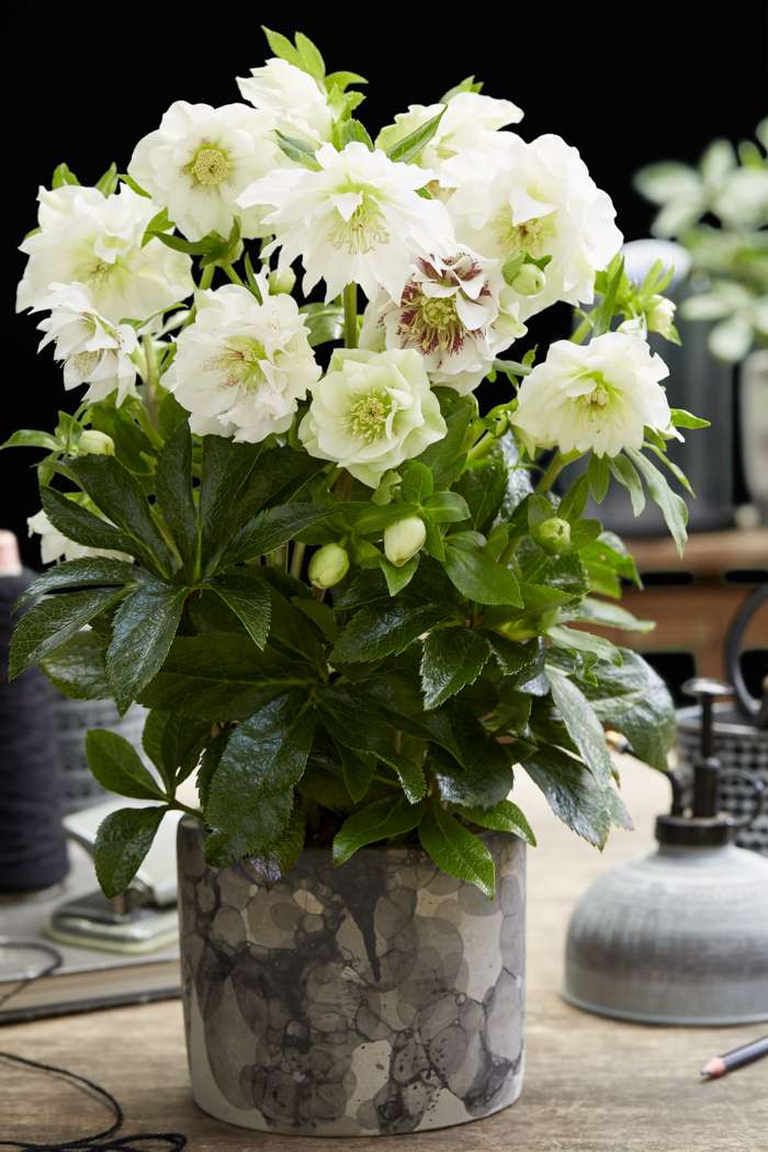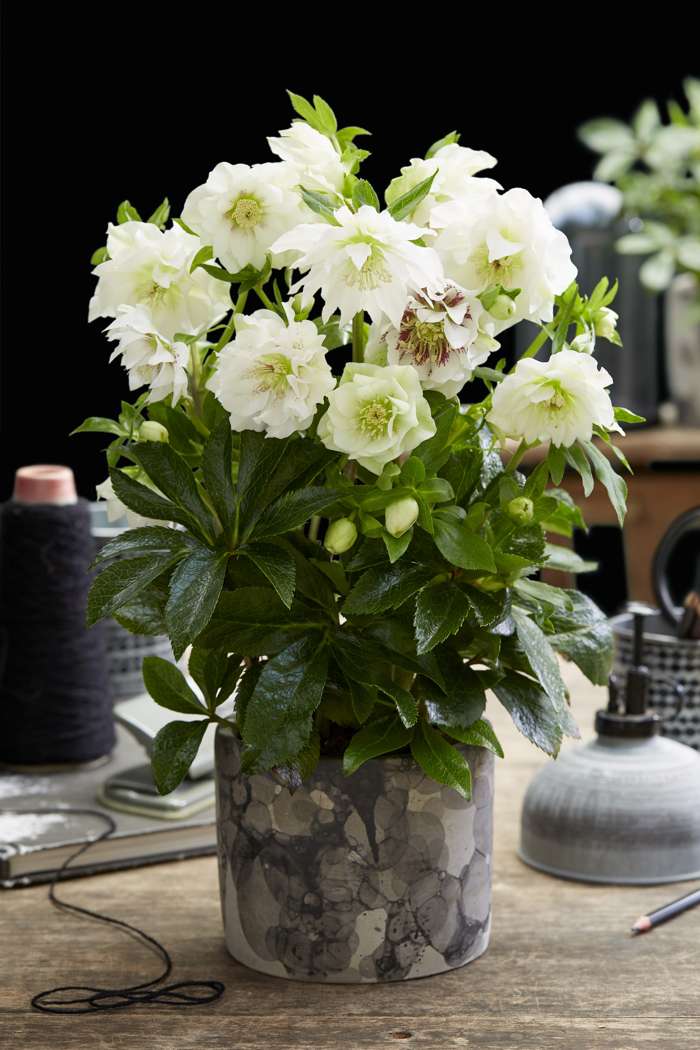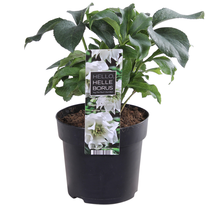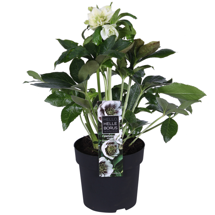 ‘Helleborus orientalis Double Ellen White’ is een plant met prachtige dubbele bloemen op lange stelen. Deze cultivar bloeit met witte bloemen. De plant is winterhard én wintergroen en staat het liefst op een plek in halfschaduw. Om de plant mooi en gezond te houden mag deze absoluut geen natte voeten hebben in de winter. Deze tuinplant staat niet graag in de volle zon, maar groeit goed op een plek met ochtend- en of avondzon. Geef de helleborus een vruchtbare en goed doorlatende grond. Strooi in de lente een laagje compost verrijkt met organische meststoffen en vermijd verplanten. Wil je de plant toch verzetten is eind augustus/begin september daarvoor de beste periode. Als het oude blad in de winter lelijk is geworden, dan kun je dat gerust afknippen zodra ze gaan bloeien. Dat laat de bloemen van de helleborus veel mooier uitkomen.