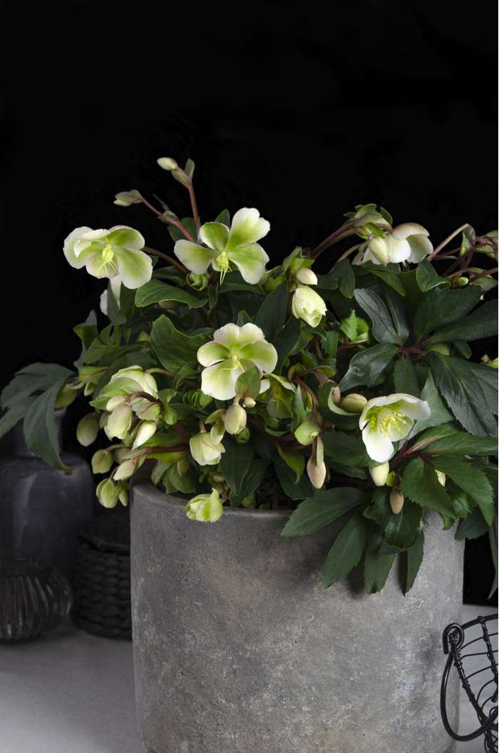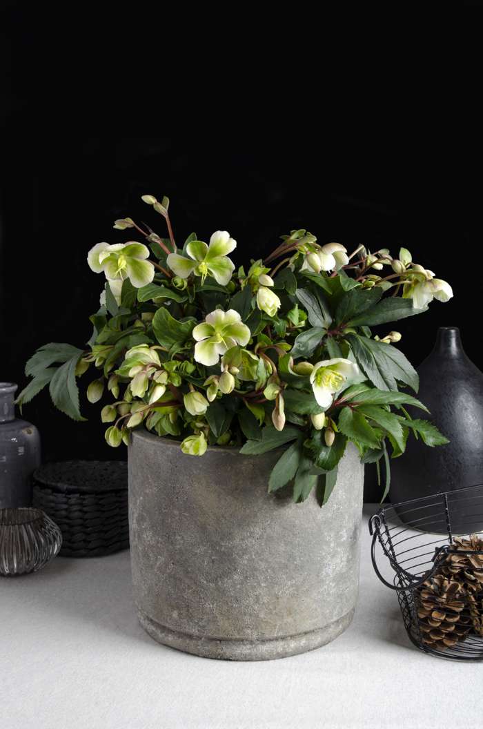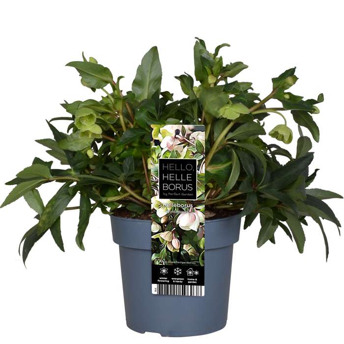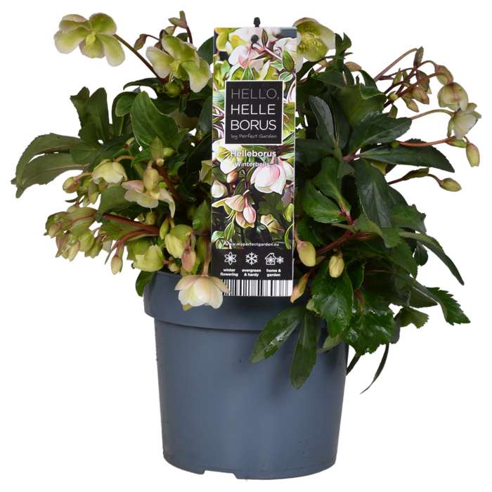 Helleborus ‘Winterbells’ is een zeer mooie en langbloeiende Kerstroos met fijne afhangende bloemen in een crème-groene kleur met roze waas eroverheen. De plant heeft groene bladeren met getande randen en produceert meerdere bloemstengels die elk uitlopen in maximaal vier bloemen. De plant staat het liefst in een goed gedraineerde, humusrijke vochtige bodem op een beschutte plek uit de koude wind. De Helleborus is een van de weinige groenblijvende en bloeiende vaste planten in de winter, waardoor het een echte aanvulling is voor je tuin. Na de bloei kan je de stengels van de Helleborus terugknippen en het lelijk geworden blad verwijderen. De plant is geschikt in een border omdat hij goed combineert met andere planten, maar het is ook een opvallende plant die daarom ook goed kan staan in een pot.