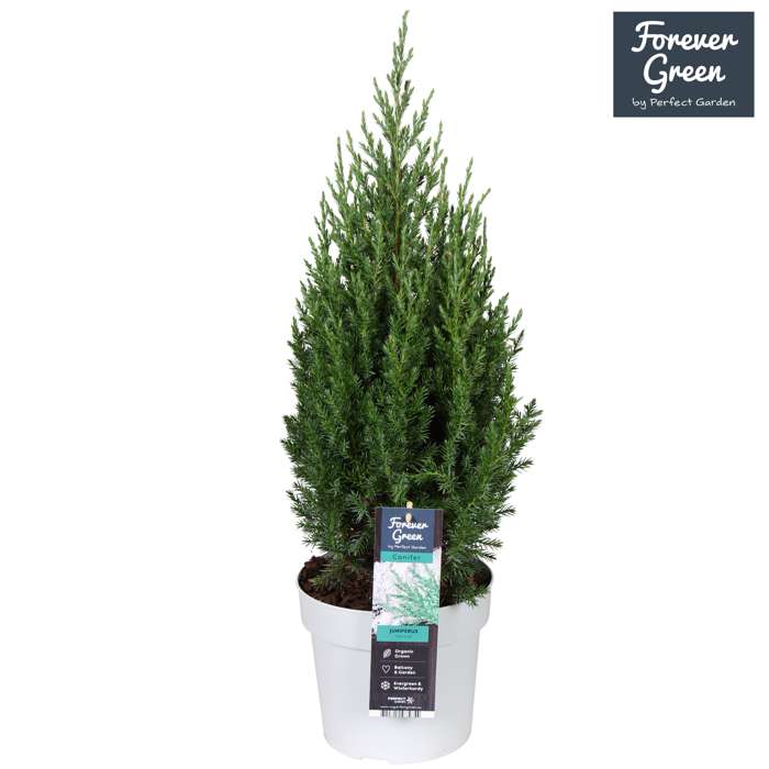 ‘Juniperus chinensis Stricta’ is een traag groeiende jeneverbes met opgaande kegelvormige groei. De plant kan 250cm hoog worden. Het zachte blad is blauwgroen en naaldvormig. De Chinese jeneverbes bloeit in april en mei met mannelijke lichtgele en vrouwelijke groene bloemen die vaak verborgen zitten in de bladoksels. De vruchtjes zijn klein, rond, blauwgroen tot donkerblauw van kleur. Ze rijpen 2 jaar aan de Juniperus en zijn bij volle rijpheid violetkleurig. De Juniperus houdt van een standplaats in de volle zon of halfschaduw en een goed doorlaatbare bodem. Deze jeneverbes is goed winterhard, redelijk droogte tolerant, verdraagt zeewind en luchtvervuiling. Deze Juniperus kan prima in een rotstuin aangeplant worden. Het is een gemakkelijke plant. Het is niet echt noodzakelijk om de plant te snoeien. Snoei, om de gewenste vorm te behouden, kan door in de lente te lange scheuten in te korten, maar niet tot het kale hout.