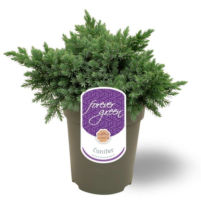 Juniperus squamata Blue Star’ is een traag groeiende, heesterachtige, laag blijvende dwergconifeer met breed uitgroeiende naalden. Een volgroeide plant kan 50cm hoog en 100cm breed worden, maar doet hier wel enkele jaren over. De ‘Blue Star’ heeft een bolvormige, compacte groei en het blad is zilverblauw in alle seizoenen. De Jeneverbes is winterhard en groenblijvend en daardoor een kleurrijke aanvulling op jouw wintertuin. De ‘Blue Star’ draagt donkerblauwe bessen en is dichtbegroeid. De Juniperus squamata ‘Blue Star’ is een weinig eisende plant die het prima doet op verschillende soorten grond, zolang de grond niet te nat is. Als de plant eenmaal goed is aangeslagen, kan hij prima tegen droogte.