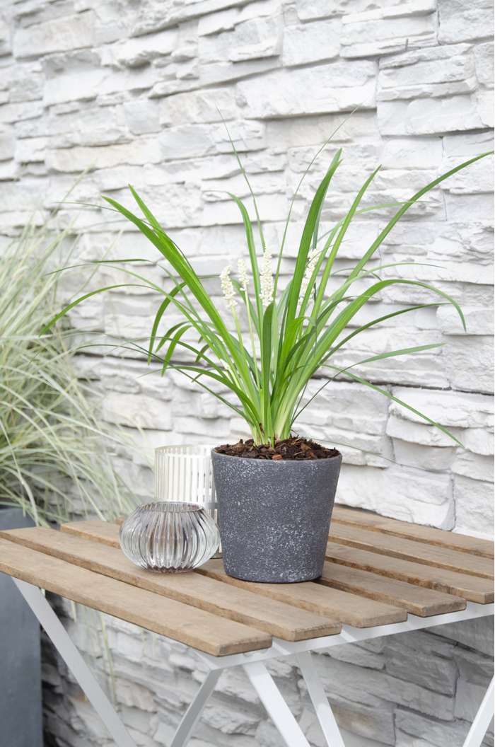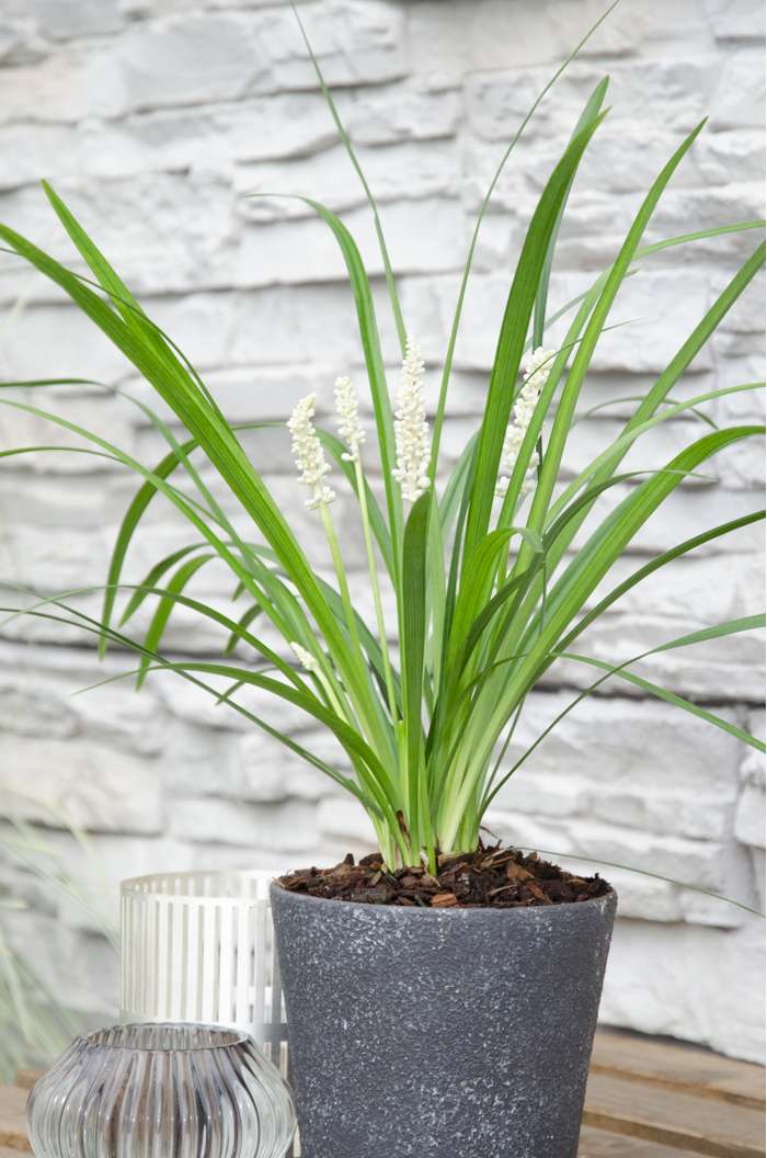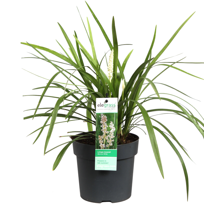 ‘Liriope Muscari Monroe White’ ofwel leliegras is een topper onder de siergrassen. Het is een wintergroene plant met een smal grasachtig blad. De bloeiperiode van de ‘Liriope Muscari Monroe White’ is in de maanden augustus tot oktober en in deze periode krijgt de plant mooie witte rechtopstaande bloemtrossen. De ‘Liriope muscari’ is geschikt als bodembedekker, maar je kan hem natuurlijk ook in een mooie sierpot neerzetten. Het leliegras staat graag op een half beschaduwde plek, dus perfect voor de schaduwplekjes in jouw tuin. De bodem dient goed waterdoorlatend te zijn. Het is een laagblijvend soort, de hoogte van de plant bedraagt ongeveer 25 tot 30 cm.