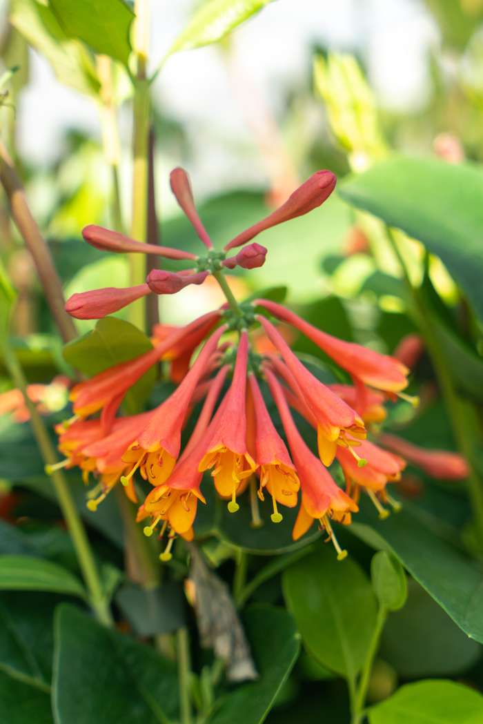 ‘Lonicera brownii Dropmore Scarlet’ is een rijkbloeiende kamperfoelie met een opvallende oranje bloeikleur. De gekleurde bloemen trekken vlinders en bijen aan. Het is een decoratieve bladverliezende plant met een smal opgaande, klimmende groeivorm. Hij bloeit in juni met opvallende geurende, violetkleurige bloempjes die later oranje uitbloeien. De bladeren zijn blauwgroen en eivormig. Deze Lonicera doet het goed in iedere goed doorlatende grond en houdt van een zonnige of halfschaduw standplaats. Hij is goed winterhard, zeewind resistent en luchtverontreiniging tolerant, heeft weinig last van ziektes of ongedierte. De Lonicera kan het best geplant worden bij een pergola muur of schutting omdat hij wel hulp nodig heeft om omhoog te groeien. Snoeien kan het best worden gedaan in het vroege voorjaar. Snoei dan de oude en beschadigde takken van de klimplant in tot de gewenste hoogte, dit stimuleert de plant met het zetten van nieuwe jonge scheuten.