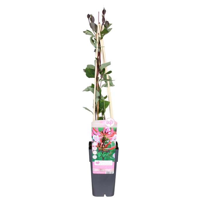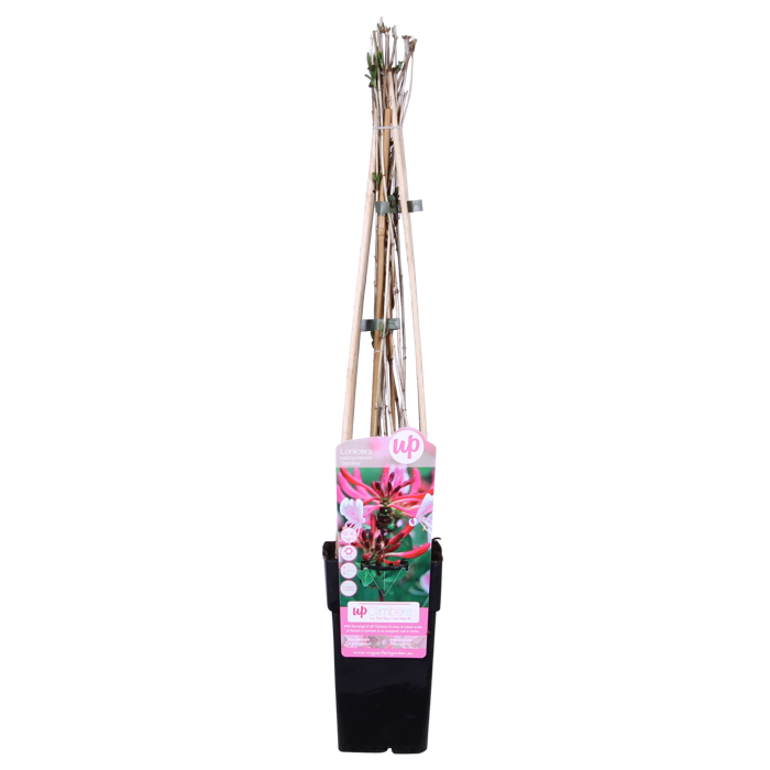 ‘Lonicera periclymenum Serotina’ is een klimplant met roze-gele bloemen, die vooral in de avond heerlijk geuren! De bladeren zijn donkergroen. Deze Kamperfoelie is geschikt tegen een muur met een rek of voor over een pergola. Zorg voor schaduw aan de voet van deze tuinplant. Plaats bijvoorbeeld een dakpan boven de voet van de kamperfoelie of plant er een bodembedekker bij. De kamperfoelie groeit van oorsprong graag in bosranden waar de plant vanuit de koelte naar een lichte, warme plek klimt. De beste standplaats is dan ook in de halfschaduw of zon. De tuinplant is vorstgevoelig, de uiteinden bevriezen dan, maar deze knip je na de winter gewoon af. Snoeien is verder niet nodig, maar als het voor de vorm nodig is kunnen er in het voorjaar storende takken weggesnoeid worden. Let op deze plant is giftig.