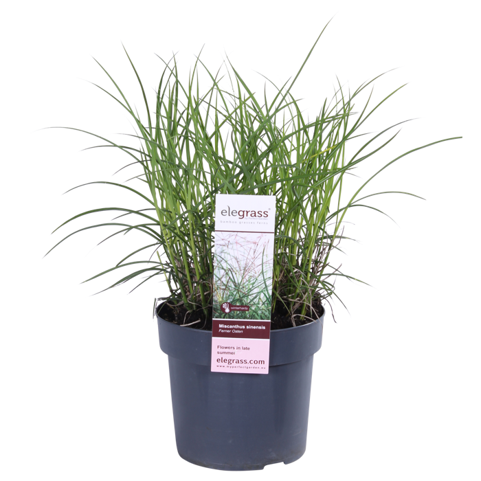 ‘Miscanthus Sinensis Ferner Osten’, in het Nederlands ook wel prachtriet genoemd, is een mooi siergras dat zich goed laat combineren met andere grassen en planten. Het prachtriet bloeit eerder dan de meeste ‘Miscanthus’ soorten. In deze periode ontstaan er bruin-rode pluimen met witte punten, die later in het seizoen meer verkleuren naar roze. De stengels van de plant zijn rood en het blad verkleurt in de herfst eveneens rood. Deze ‘Miscanthus’ is een sterke en krachtige groeier, zowel in de volle grond als in een grote sierpot. Je kunt dit gras in de volle zon tot halfschaduw plaatsen. Hij groeit het beste in een humusrijke grond, maar stelt eigenlijk weinig eisen. Na de winter kun je dit siergras het beste afknippen tot 10 cm boven de grond voor een snelle en frisse hergroei. In de winter verliest de Miscanthus namelijk zijn blad, maar in het voorjaar loopt de plant weer opnieuw uit. Nog mooier en frisser dan eerst!