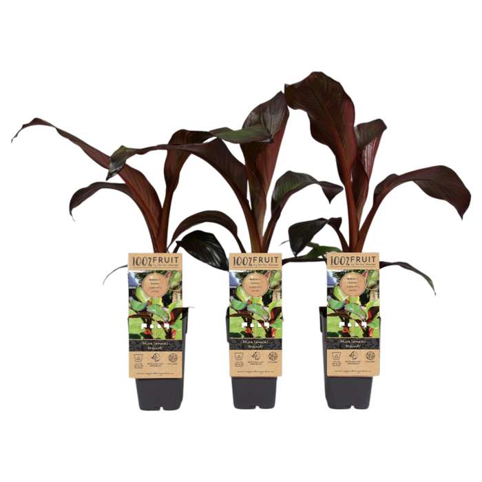 ‘Musa Maurelli’ is een aparte bananenplant met bijzonder mooi gekleurd blad. Het blad van deze banaan is prachtig. Hij heeft recht opgaande bladeren waarvan de bovenzijde groen tot donkerpaars verkleurd, de onderzijde donkerrood tot fel rood. De stam wordt vrij dik, in verhouding veel dikker dan van andere bananensoorten. De omtrek van de stam kan wel naar 2 meter groeien. Na 3 jaar kan deze bananenplant gaan bloeien met een bordeaux rode bloem, maar dit zal wel alleen zijn onder warme temperaturen. In ons klimaat wordt de plant ongeveer twee meter. Deze banaan is een echte aanwinst voor op het terras en daarbij is hij ook prima te houden in een grote plantenbak. Geef in de zomer rijkelijk water en om de twee weken van april t/m augustus een gift mest. De bananen plant kan niet goed tegen vorst, daarom is het belangrijk om deze plant te laten overwinteren bij een temperatuur van +6ºC of lager.