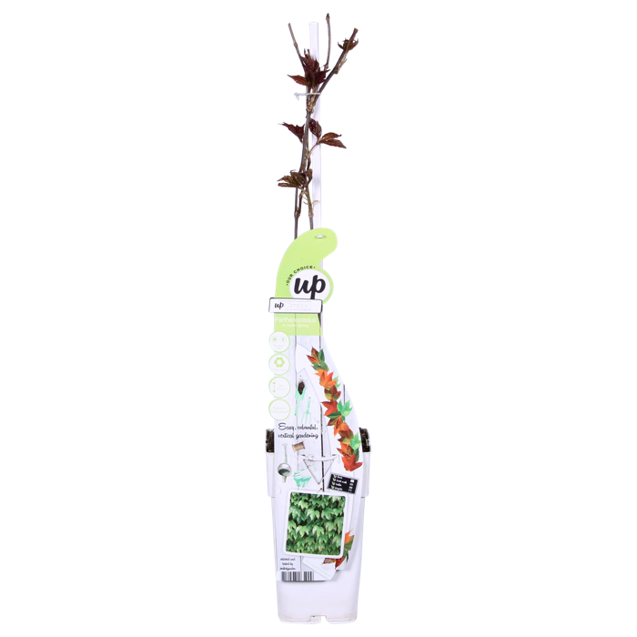 ‘Parthenocissus tricuspidata Green Spring’ is een bekende variant van de wilde wingerd. De ‘Green Spring’ loopt uit met groot fris geel-groen blad wat enigszins glanst. Het blijft tot ver in de herfst fris groen, en verkleurt laat in de herfst naar prachtige vuurrode en gele kleuren. In de bloeitijd trekt deze plant veel bijen aan. Het is een zelfhechtende klimplant en hoeft dus niet begeleid te worden. Dankzij de sterke hechtwortels groeit de wingerd snel en muurvast tegen gevel en schutting. In de winter verliest hij zijn blad maar kan strenge winters goed overleven. Het is een gemakkelijke plant die zowel in de zon als in de schaduw kan staan. Snoei is niet nodig, maar kan het gehele jaar worden gedaan om hem compact te houden of als hij glas of hout dreigt te overwoekeren. De hechtwortels van de plant zorgen namelijk ervoor dat ze sporen nalaten en dat is natuurlijk niet de bedoeling. Knip in dat geval zeker de wingerd op tijd flink terug, de plant kan het prima hebben.