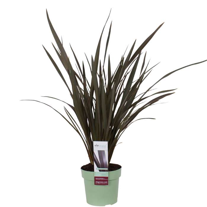 ‘Phormium tenax Platts Black’, in het Nederlands Nieuw Zeelands vlas genoemd, is een groenblijvende exotische plant en heeft kenmerkende stijve en zwaardachtige bladeren. De rechtopstaande bladeren zijn diep zwartpaars gekleurd. Na enkele jaren kan deze Phormium bloeien met opvallende hoge bloempluimen en buisvormige, donkerrode bloempjes tijdens de maanden juli en augustus. Helaas bloeit de plant in ons zeeklimaat zelden. De Phormium is winterhard en groenblijvend en daardoor een kleurrijke toevoeging aan jouw wintertuin. Deze plant is makkelijk in onderhoud en is hitte en droogte resistent. De Phormium komt het beste tot zijn recht als blik vangende solitair, maar doet het ook goed in groepen. De plant hoeft niet gesnoeid te worden maar je kan wel de dode bladeren weg knippen. De Phormium staat het best op een beschutte plek in droge tot vochthoudende, voedselrijke grond in de volle zon of lichte schaduw.