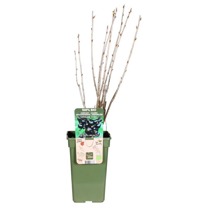 ‘Ribes Nigrum Titania’ is een zwarte aalbes. De bessenstruik is middelgroot en verliest in de winter zijn blad. De plant is vooral bekend door de Cassis drank wat men van de bessen maakt. Deze bessen soort geeft al jong een groot aantal bessen. De zwarte bes bloeit in april met groen-witte bloemen in trossen. De vruchten hangen in lange trossen en zijn zwart van kleur. Ze zijn zeer rijk aan vitamine C en mineralen. Je kan ze los eten maar komen het beste tot hun recht verwerkt in sap of jam. De struik heeft direct zonlicht nodig voor een optimale opbrengst en zoetere bessen. De bessen van deze struik zijn vanaf eind juni te plukken. Snoeien kan het beste na de pluktijd gedaan worden, verwijder dan alleen de dode takken. Hij is gemakkelijk in onderhoud en heeft al na 1 jaar vruchten in de struik.