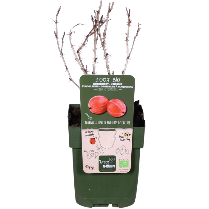 ‘Ribes uva-crispa Captivator’ is een rode kruisbes. Het voordeel van deze struik is dat hij minder grote stekels aan de takken heeft zitten in vergelijking tot andere kruisbes soorten. Het is hierdoor makkelijker om de vruchten te plukken. Deze rode kruisbes bloeit in april met groen-witte bloemen en rond juli zijn de vruchten klaar om geplukt te worden. De vruchten zijn middelmatig groot, rond en lichtrood van kleur. Het is niet een gangbare struik om thuis te kweken, maar wel een hele makkelijke plant voor de startende fruittuinier of voor kinderen die graag tuinieren. De kruisbes is goed te gebruiken voor het maken van confituren of wijn. In de winter verliest deze struik zijn blad en dan is ook het beste moment om te snoeien. Zonder blad is de struik namelijk het beste te zien en zo kan je hem in de gewenste vorm terugsnoeien. Deze rode kruisbes staat het liefst op een plekje in de zon in een niet te vochtige grond.