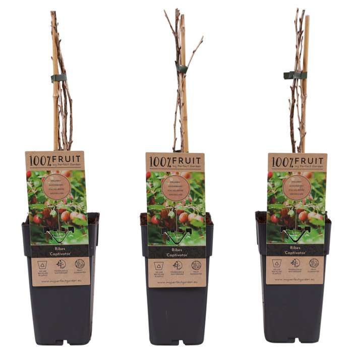 ‘Ribes uva-crispa Captivator’ is een rode kruisbes. Het voordeel van deze struik is dat hij minder grote stekels aan de takken heeft zitten in vergelijking tot andere kruisbes soorten. Het is hierdoor makkelijker om de vruchten te plukken. Deze rode kruisbes bloeit in april met groen-witte bloemen en rond juli zijn de vruchten klaar om geplukt te worden. De vruchten zijn middelmatig groot, rond en lichtrood van kleur. Het is niet een gangbare struik om thuis te kweken, maar wel een hele makkelijke plant voor de startende fruittuinier of voor kinderen die graag tuinieren. De kruisbes is goed te gebruiken voor het maken van confituren of wijn. In de winter verliest deze struik zijn blad en dan is ook het beste moment om te snoeien. Zonder blad is de struik namelijk het beste te zien en zo kan je hem in de gewenste vorm terugsnoeien. Deze rode kruisbes staat het liefst op een plekje in de zon in een niet te vochtige grond.