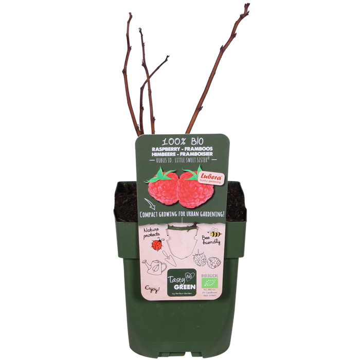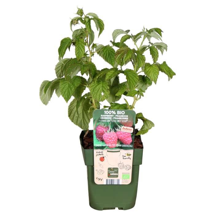 ‘Rubus Low. Little Sweet Sister’ is een compact groeiende dwerg framboos en wordt maximaal 100 cm hoog. Hij is daarom uitermate geschikt voor op je terras of balkon. De frambozen zijn van gemiddelde grote, mooi donkerrood van kleur en lekker zoet. Deze framboos rijpt als een van de eersten, namelijk al in mei. Deze Framboos is zelfbestuivend en bloeit in april met onopvallende, kleine wit-roze bloemetjes waar bijen en hommels op af komen. Na de bloei ontwikkelen de frambozen zich. Zo kunnen zo van de struik gegeten worden, maar van de frambozen kun je ook heerlijk jam en sap maken. Frambozen zijn in de winkel vaak erg prijzig, daarom is het veel leuker ze zelf te kweken! Bij frambozen wordt het eerste jaar alleen een tak gevormd en het volgende jaar komen hieraan vruchten. Na de oogst kunnen daarom gelijk de takken die vrucht gedragen hebben kort bij de grond worden afgeknipt. De jonge takken gaan het jaar daarna bloeien en krijgen dan vruchten. De framboos heeft ondersteuning nodig om goed te kunnen groeien, plaats hem daarom altijd tegen een klimrek. Verder houdt hij van een zonnig plekje.