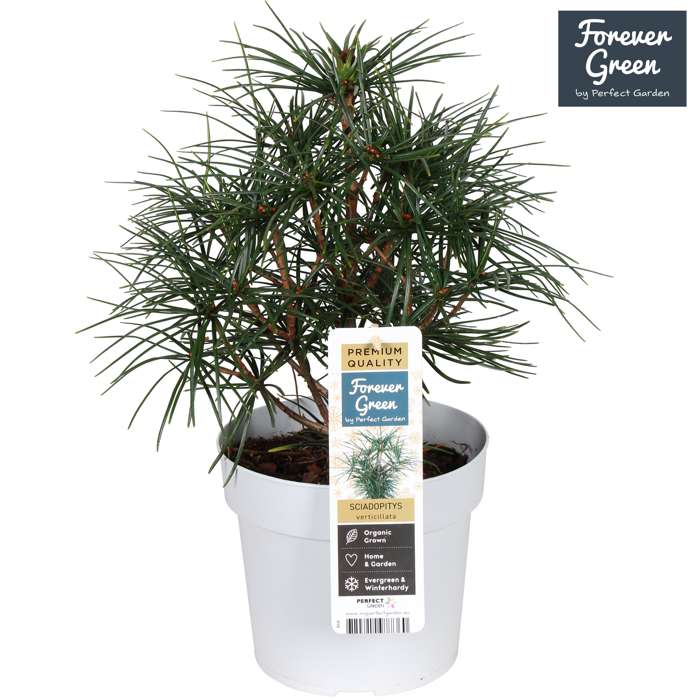 Sciadopitys verticillata, ook wel bekend als de Japans parapluboom of umbrella pine, is een unieke en opvallende naaldboom die zijn oorsprong vindt in Japan. Het is een langzame groeier en een populaire sierboom vanwege zijn karakteristieke uiterlijk en onderhoudsvriendelijke eigenschappen. De boom heeft een exotische uitstraling en is een uitstekende keuze voor tuinen die op zoek zijn naar iets bijzonders.