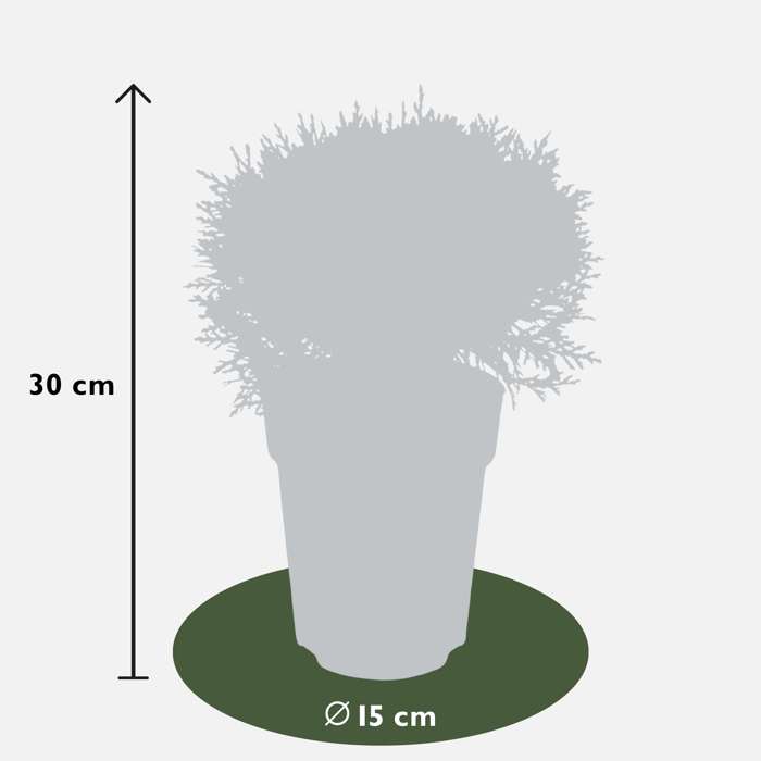 Thuja occidentalis Danica’ is een laagblijvende, traag groeiende dwergconifeer die groeit in bolvorm. De ‘Danica’ kan 125cm hoog en 150cm breed worden, maar doet hier minimaal 20 jaar over. Het gelaagde, verticaal uitstaande blad is geelgroen in de zomer en verkleurt in de winter naar blauwgroen. De ‘Danica’ is winterhard en groenblijvend en is daardoor een kleurrijke toevoeging aan jouw wintertuin. De dwergconifeer gedijt het beste op vochthoudende, goed afgewaterde, lichtzure grond in de volle zon of halfschaduw. Vermijd volle schaduw. In hete en droge periodes is het belangrijk de plant veel en vaak water te geven.
