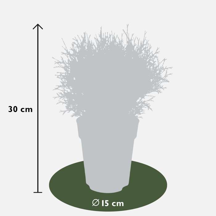 Thuja Occidentalis Tiny Tim’, in het Nederlands Westerse Levensboom genoemd, is een laagblijvende, traag groeiende dwergconifeer met bolvormige groei. De Thuja Occidentalis ‘Tiny Tim’ kan 100cm hoog worden. Het gelaagde, verticaal uitstaande blad is lichtgroen tot groen in de zomer en verkleurt in de winter naar donkergroen. Deze traag groeiende dwergconifeer in bolvorm is winterhard en groenblijvend en is daardoor een kleurrijke toevoeging aan uw wintertuin. De Thuja Occidentalis ‘Tiny Tim’ gedijt het beste op vochthoudende, goed afgewaterde, lichtzure grond in de volle zon of halfschaduw. Vermijd echter wel volle schaduw. In hete en droge periodes is het belangrijk om deze dwergconifeer veel en vaak water te geven.