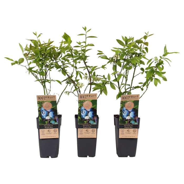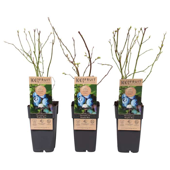 ‘Vaccinium corymbosum Brigitta Blue’ is een Amerikaanse blauwe bes, ook wel bosbes. De struik heeft dunne takken en kleine frisgroene bladeren. De vruchten zijn stevig, lichtblauw met een goede smaak. Ze zijn te plukken half juli tot half augustus. Vers zijn de blauwe bessen een week te bewaren en je kan ze ook invriezen. De blauwe bes bloeit in trossen en de bloem is witcrème tot roze van kleur. De bloei is in de eerste helft van mei. Deze plant is geheel zelfbestuivend en heeft bijna geen verzorging nodig. De bessen zijn niet heel erg aantrekkelijk voor vogels, maar soms kan het afdekken van de planten toch nodig zijn. De ‘Brigitta Blue’ is een soort die het goed doet op vrijwel alle grondsoorten. Blauwe bessen hebben een geneeskrachtige werking. De bes bevat namelijk anthocyaan, een stof die de bes zijn blauwe kleur geeft. Deze stof heeft een goede werking op hart- en bloedvaten. De kleurstof kan er onder andere voor zorgen dat vetophoping in de bloedvaten wordt verminderd, hierdoor wordt de doorbloeding van de bloedvaten beter. Daarnaast bevatten blauwe bessen antioxidanten. Deze spelen een belangrijke rol bij het verouderingsproces. Antioxidanten werken ontstekingsremmend, cholesterolverlagend en beschermen tegen verschillende ziekten, zoals kanker. Er zijn maar weinig voedingsmiddelen die meer antioxidanten bevatten dan blauwe bessen. Een super gezonde bes!