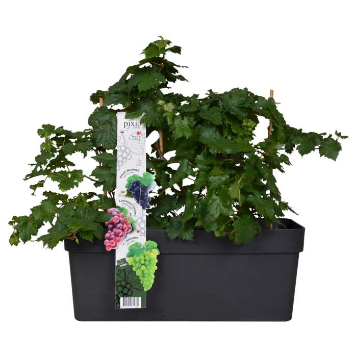 B2B B2CVitis Pixie 3 soort in een pot. ‘Riesling’ is een wit druivenras. Riesling wijn staat bekend om zijn aromatische kracht, variërend van strakdroog tot volzoet met altijd duidelijk waarneembare fijne zuren. ‘Cabernet franc’ dateert uit het einde van de 18e eeuw en is een van de belangrijkste blauwe druiven ter wereld. Van deze druivensoort wordt […]