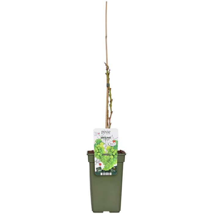 ‘Riesling’ is een wit druivenras. Riesling wijn staat bekend om zijn aromatische kracht, variërend van strakdroog tot volzoet met altijd duidelijk waarneembare fijne zuren. Vitis Pixie Grape is een dwergdruif die kleine trossen druiven produceert, een gemiddelde tros is 10 cm groot. De Pixie Grape is een van nature voorkomende mutant van Vitus Vinifera ‘Pinot Meunier’, een druivensoort die wordt gebruikt om wijn en champagne te produceren. In tegenstelling tot traditionele wijnstokken waarbij het tot drie jaar kan duren om druiven te produceren, begint de Pixie-druif in het eerste jaar al de kleine druiven te produceren. De druif heeft doordat hij compact is een unieke uitstraling en is extra leuk voor de wijnliefhebber.  Deze dwergwijnstokken hebben korte stengels en geven de voorkeur aan bloemen in plaats van ranken. Ze zijn slechts  30 tot 50 cm hoog, daardoor is de Vitis Pixie makkelijk te kweken in kassen of op het balkon of terras. Deze plant is makkelijk te verzorgen dus ook geschikt voor de minder ervaren tuinier.