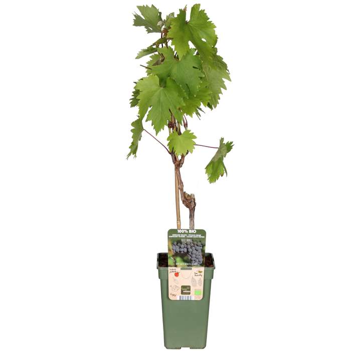 ‘Vitis Venus’ is een pitloze blauwe druif zowel geschikt voor verse consumptie of als wijndruif. Deze soort heeft extra grote vruchten en is daardoor een hele goede wijndruif. Het is een klimplant die enkele meters hoog kan worden. Je kunt hem zelf in allerlei vormen leiden en door goed te snoeien zeer compact houden. Je kan de druif goed leiden langs een pergola of met spandraden op de muur. De druif geeft in de periode mei- juni eerst onopvallende trosjes bloemen, waarna de druiventrossen zullen vormen. De vruchten zijn blauw, met een zoete aromatische smaak. Je kan ze direct opeten of gebruiken voor jam, sap of het maken van wijn. De druivenplant heeft veel zon nodig om te kunnen rijpen en houdt van warmte waardoor een plek op het zuiden ideaal is. De druiven kunnen vanaf midden september geoogst worden. De bodem dient goed doorlatend en voedzaam te zijn en het liefst niet te zuur, eerder kalkrijk. Door snoeien vergroot je de vrucht opbrengst en de plant ziet er ook netter uit. Het beste snoei je de plant in de periode tussen november en februari, maar niet tijdens strenge vorst. Snoei dan overbodige zij en hoofdtakken weg. Deze druivensoort is winterhard en kan temperaturen tot -20 graden prima aan.
